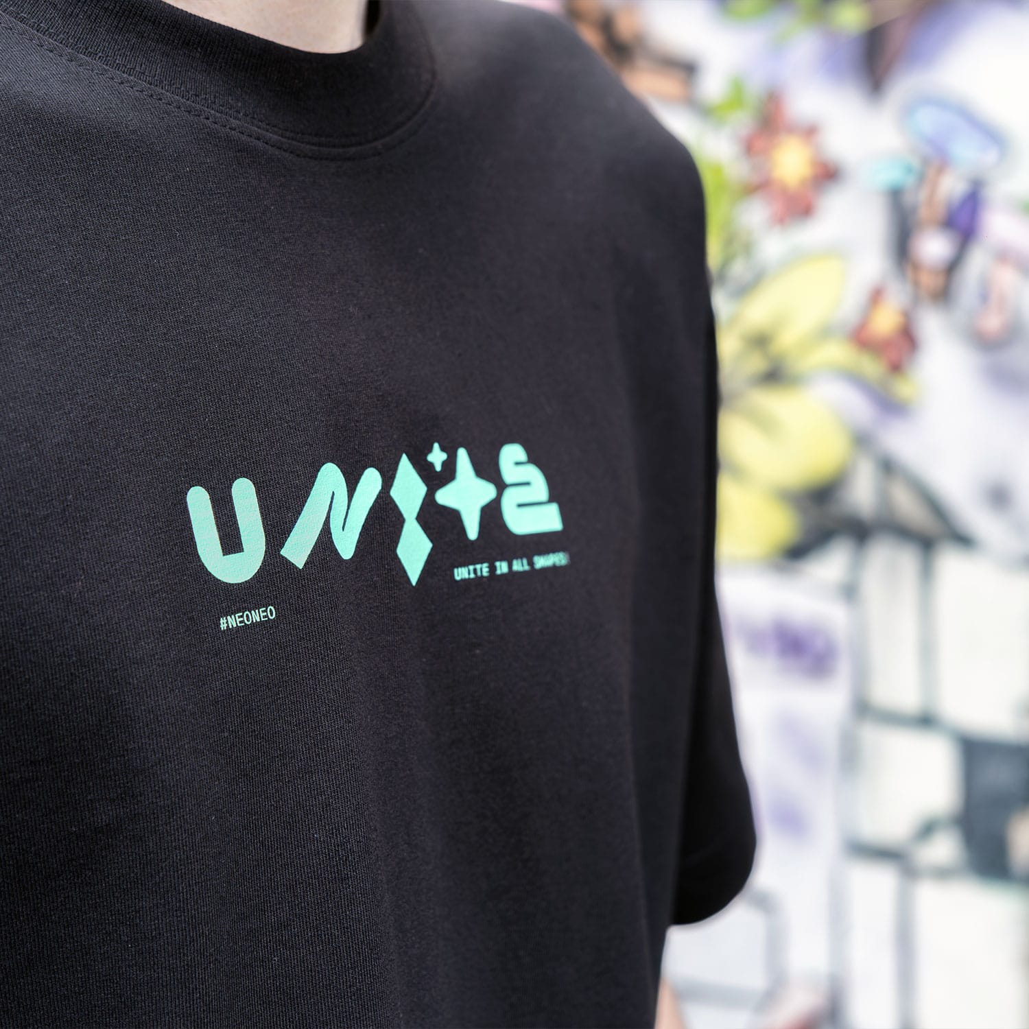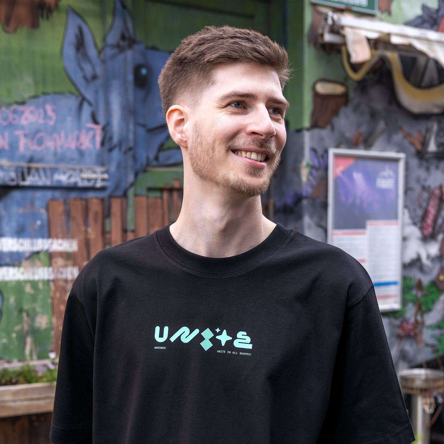 Das Wort „UNITE“ ist im Motiv bewusst aus komplett verschiedenen Formen gebaut – jede Letterform ist anders und eigen. Und trotzdem ergeben sie zusammen ein Ganzes: UNITE. Einheit durch Vielfalt. Zusammenhalt trotz – oder gerade wegen – Unterschiedlichkeit.